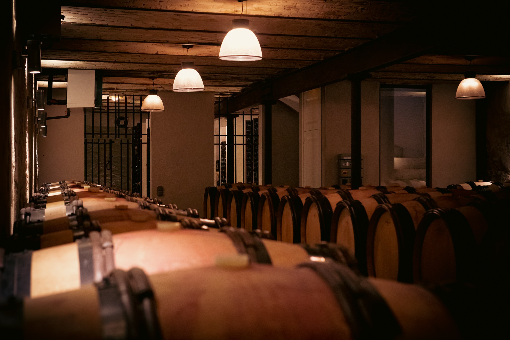 Na de oogst wordt ongeveer 90% van de druiven zorgvuldig ontsteeld. De verschillende druivenrassen worden afzonderlijk vergist in traditionele betonnen cuves, waarbij de vergisting en schilweking tot wel 35 dagen kunnen duren. Deze langzame, gecontroleerde fermentatie zorgt voor maximale extractie van aroma’s en structuur. Na de gisting rijpt de Grenache 16 maanden in betonnen vaten om zijn puur fruit en elegantie te behouden, terwijl de overige druivenrassen worden opgevoed in nieuwe Franse eikenhouten vaten gedurende één jaar voor extra complexiteit en finesse.